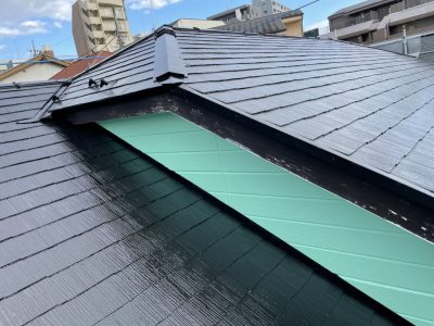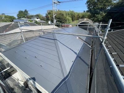こんにちは。先日は屋根のみの塗装をおこないました。屋根は外壁に比べて痛みやすいので、お早めに修繕回復しましょう!暑い中職人さんお疲れ様でした。
