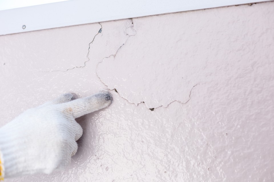 壁にヒビ割れが発生している状態を指します。(一般に1~3mmのヒビ割れだと雨漏れの可能性がある)外壁のクラック(ひび割れ)は、経年劣化や施工不良、地震など様々な原因で発生します。