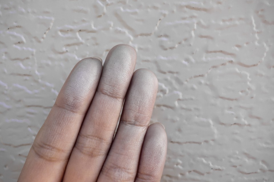 塗膜の表面を手でなでた際、黒板に用いるチョークの粉のようなものが付く現象。塗膜の保護機能がなくなっている状態のことを言います。外壁の塗装表面にある表層樹脂が、熱や紫外線、風雨などによって劣化してしまうことによって発生する現象で、壁を触ると手に粉が付着します。粉の色は白いことが多いですが、外壁の色と似たカラーの粉末が付着していたら、チョーキング現象である可能性が高いです。